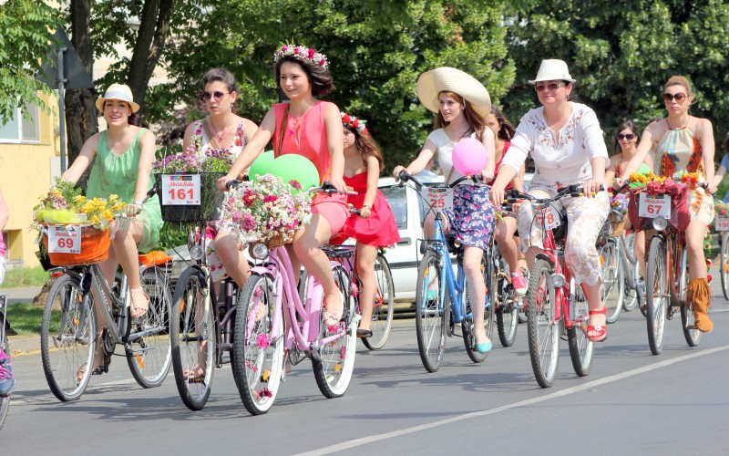 A csajos, sznobis promenádra érkezők ma 15.00 óra tájékán gyülekeztek Aradon a Galleria Pláza előtt, hogy a fotózkodás és bemutatkozás után elkerékpározzanak a Hegyalja (Podgoria) térig. A SkirtBike kerékpáros promenádot kizárólag hölgyek számára szervezik Európa több városában, Aradon pedig 2013 után immáron második alkalommal. Az érdeklődés nő, idén már körülbelül 300 hölgy pattant a kicsicsásított, virágkosárral díszített bringák nyergébe, hogy kellően elegáns ruhakompozícióban, egy pöpec bicaj nyergében lekarikázza a távot, s közben elnyerje a zsűri érdeklődését, hisz több kategóriában is hirdettek győztest.