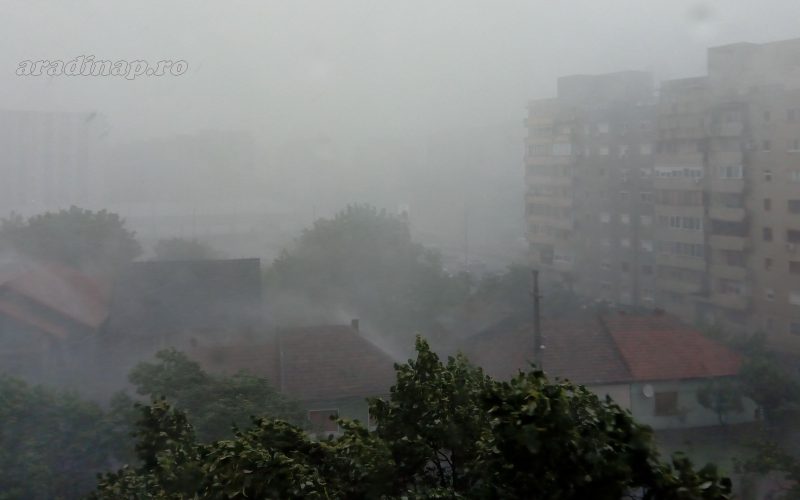 Újabb, szinte menetrend szerűen érkező, orkán erejű vihar süvített át vasárnap a déli órákban Aradon. Az eredmény a “megszokott”: kidőlt fák, elárasztott utcák. A vihar vastagja kb. 15-20 percig ostromolta a várost, víz alá került, többek között a mikelakai vasúti aluljáró, a Cocorilor (villamos pótló buszok közlekedtek délután), Libertăţii, Roşiori, Turdei utcák, Újaradon a Mikelakai felőli körforgalom.