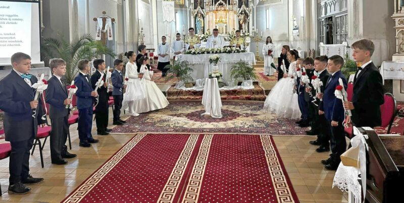 Tizenegy pécskai, két németszentpéteri és egy szederháti gyermek részesült az első szentáldozásban vasárnap délelőtt, Pécskán.